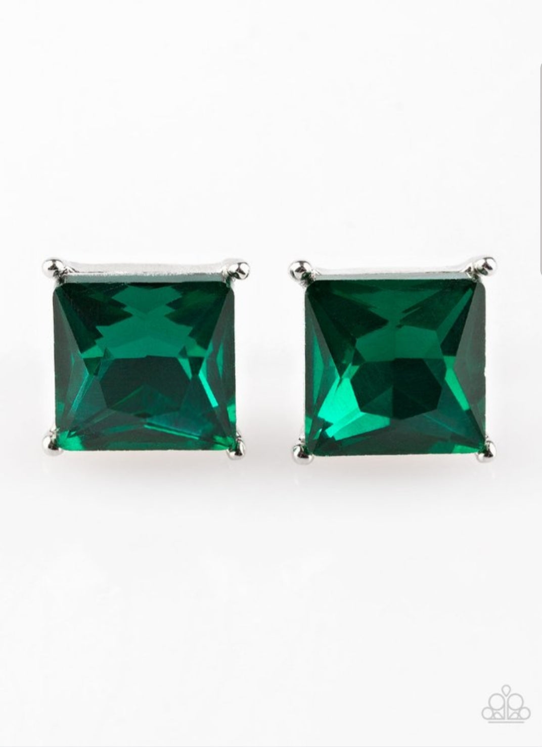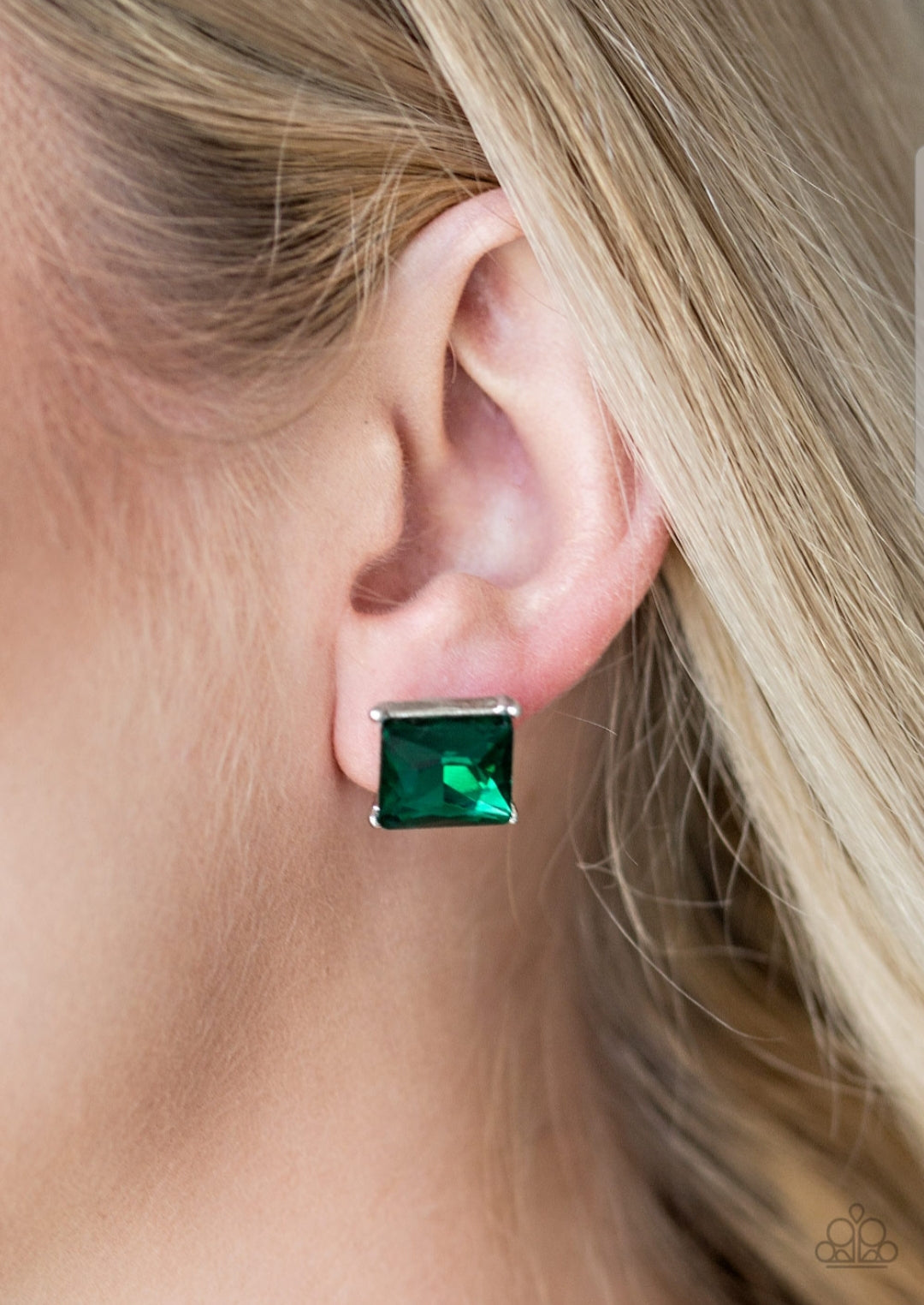 Featuring a timeless princess style cut, a dramatic green gem is pressed into a sleek silver frame for a timeless look. Earring attaches to a standard post fitting.