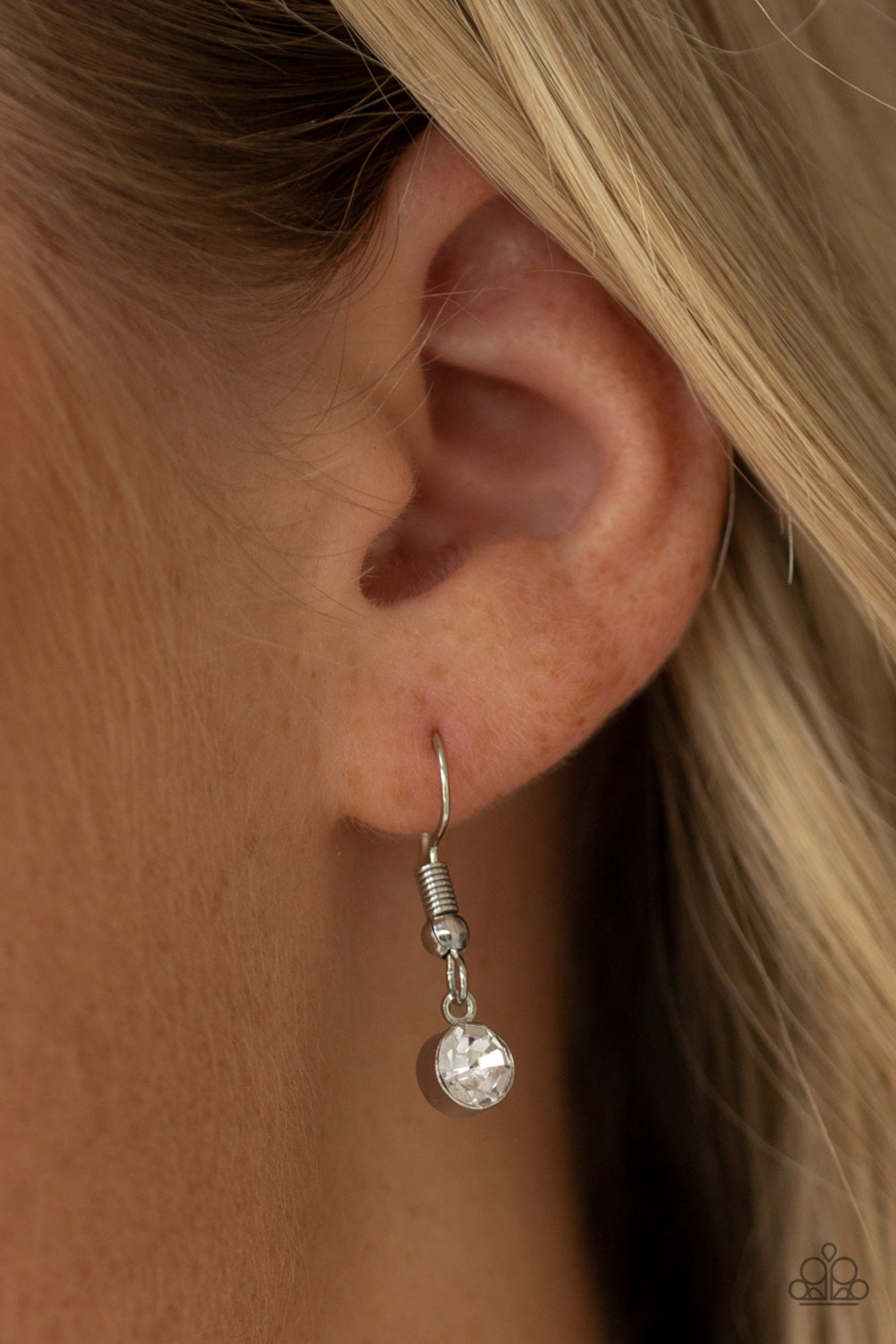 An oversized blue teardrop gem is nestled inside of an abstract silver frame that has been dipped in glassy white rhinestones. The spellbinding pendant swings from the bottom of a lengthened silver chain for a glamorous finish. Features an adjustable clasp closure.